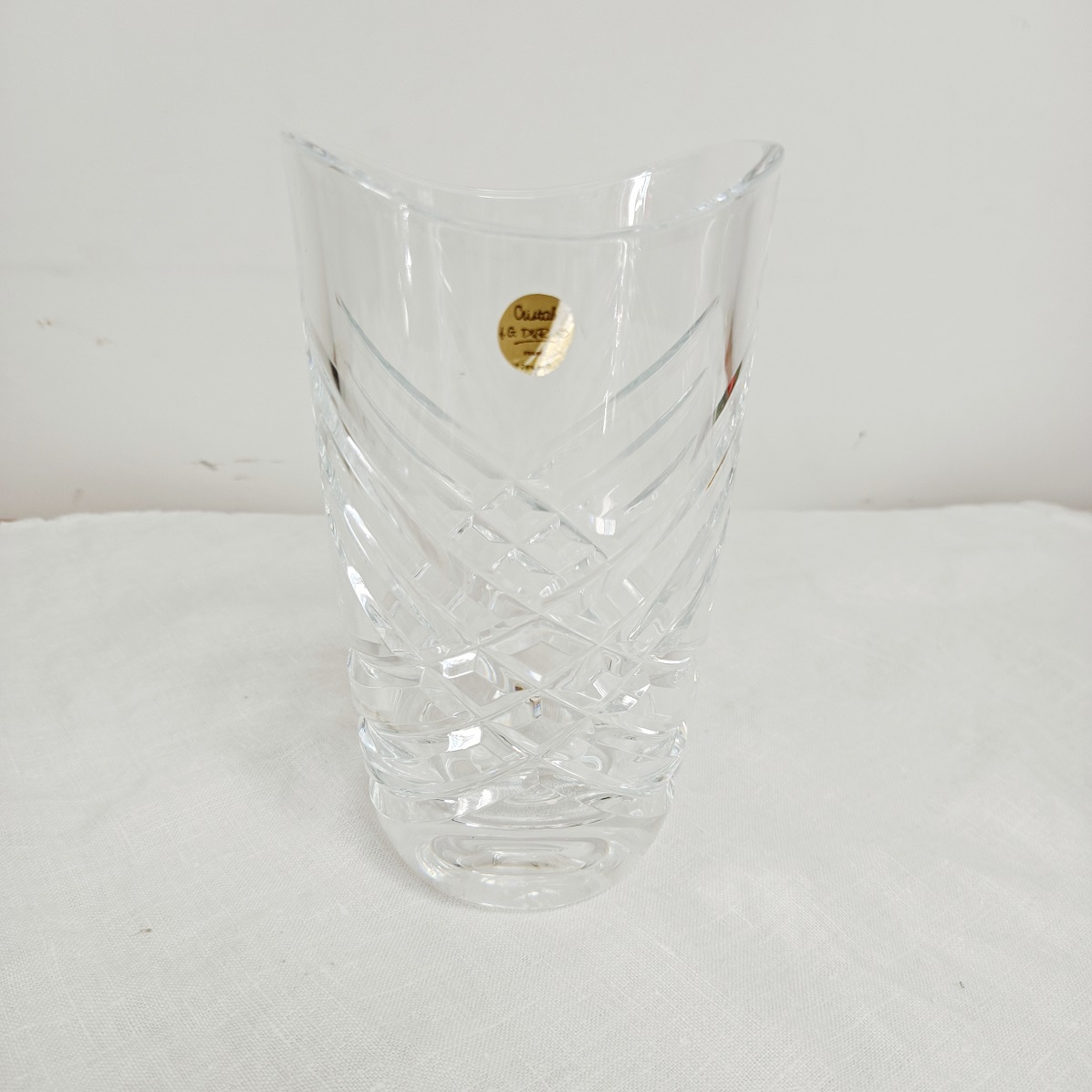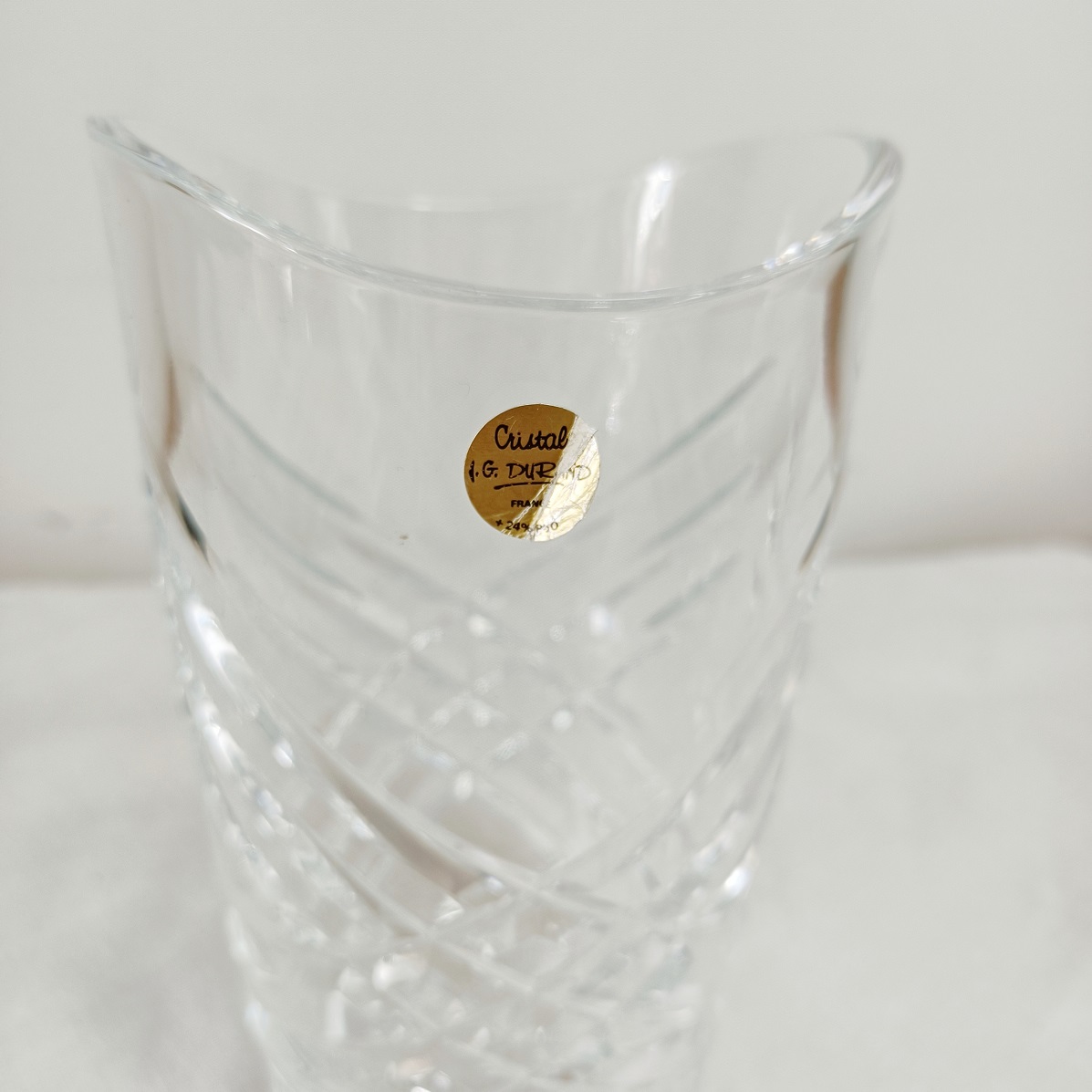 Vase en cristal JG Durand, en excellent état avec son étiquette d’origine.